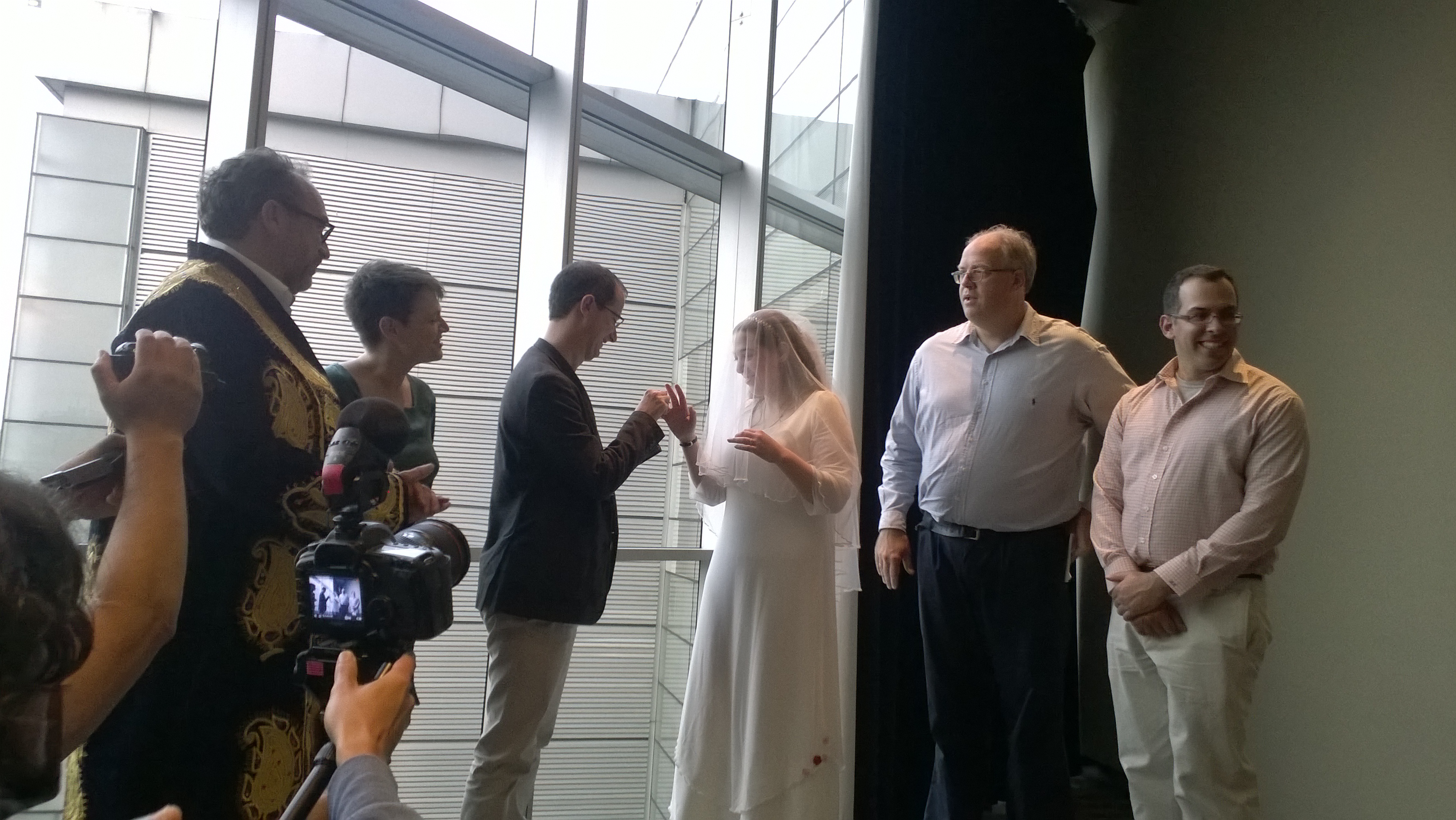 משתתפי הכנס זכו לקחת חלק בטקס החתונה של מתנדבי העמותה אבנר ודריה, עם גי'מי ויילס, מייסד ויקיפדיה, בתפקיד 'מוסר הכלה', ועם יאן בארט דה וריד, יו"ר הוועד המנהל היוצא של קרן ויקימדיה, בתפקיד המחתן (ועל כך, פרטים בהמשך!).