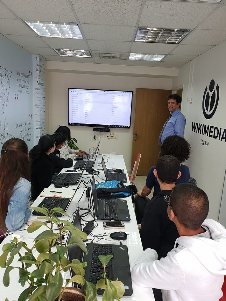 In February 2019, the first pilot took place. A group of 6 high-school students from Ort Yad Leibowitz in Netanya, arrived with their teachers to WMIL’s offices. During the 3-hour long activity, the students learned about the background of Wikidata, and the Wikimedia vision. The rationale and potential of Wikidata as an open-knowledge structured and linked database was explained. The students then got acquainted with the platform itself, learning how knowledge is represented through declarations, and making their first edits on Wikidata. In the last part, the students learned about the Query Service and were shown examples of how information can be retrieved using simple queries. The material learned at this activity will be further deepened by the teachers during the regular lessons in the coming weeks.